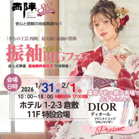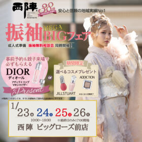 12月の振袖 MEGA BIGフェア開催のお知らせです!✨ 今回は、西陣 福山本店にて 12/21(日)~12/23(火)の3日間 10:00~18:…