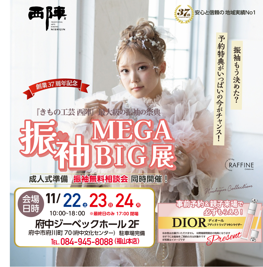 連休中ですがご家族お揃いで「きもの工芸西陣 振袖MEGABIG展」へお越しください!