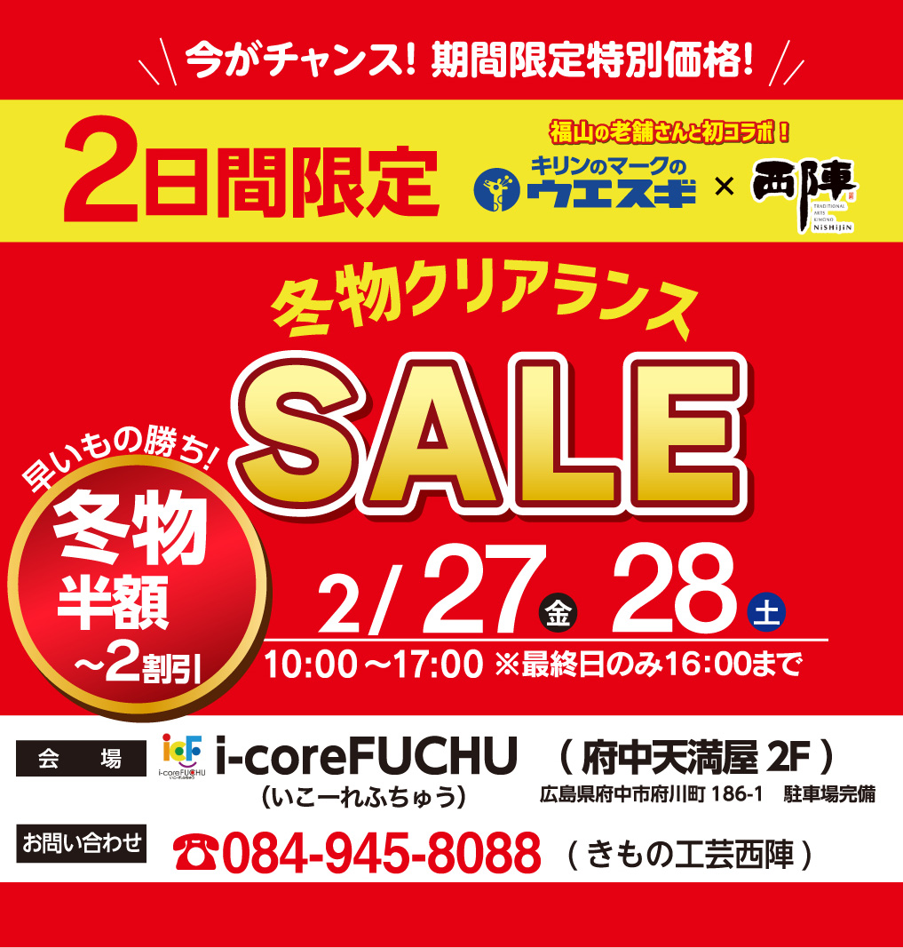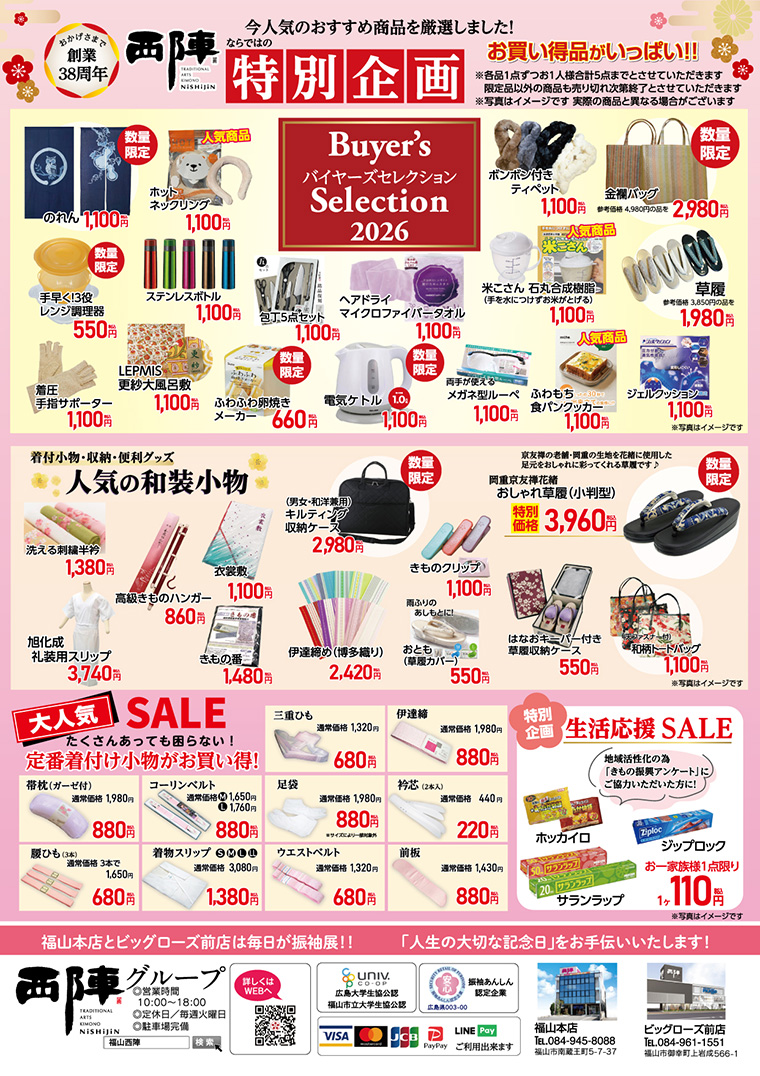 いくつあっても困らない着付け小物など、期間限定のお得な商品をたくさんご用意しています!
